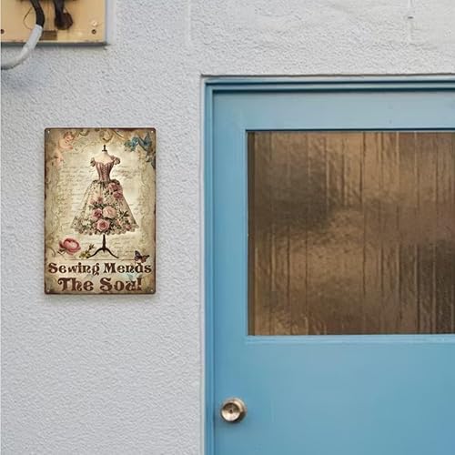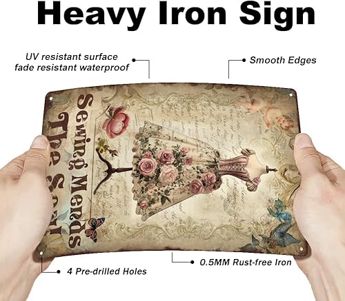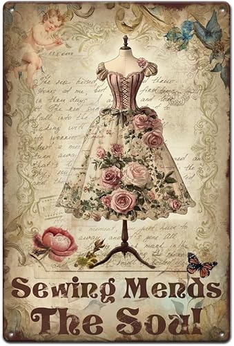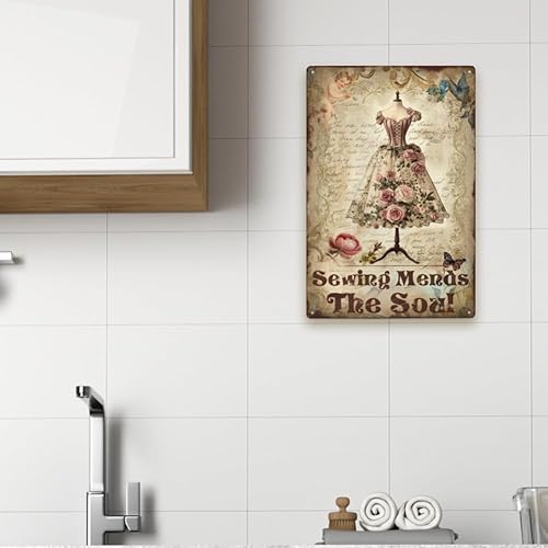 SUPERDANT la Couture Répare L'Âme en Plaque Metal Vintage Robe Florale Plaque Murale Decorative Thème de la Robe Signes Vintage Couture Arts Muraux en Métal Décoration Murale pour Chambre de Fille
