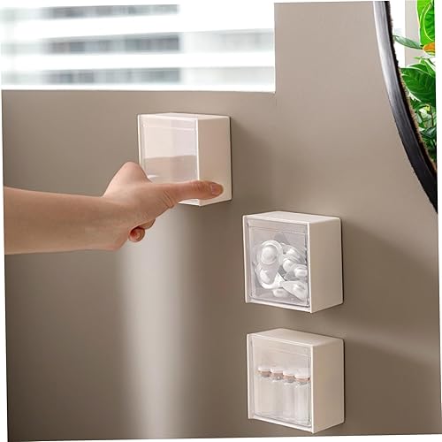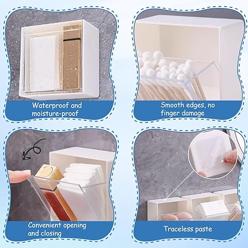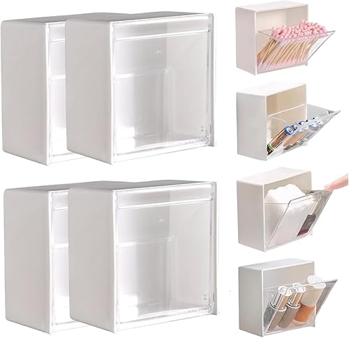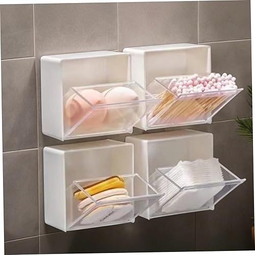 Lot de 4 distributeurs de cotons-tiges 8,6 x 4,6 cm - Support mural Qtip avec couvercle à rabat - Installation sans perforation - Pour cotons-tiges, cotons-tiges, pinces à cheveux et petits articles