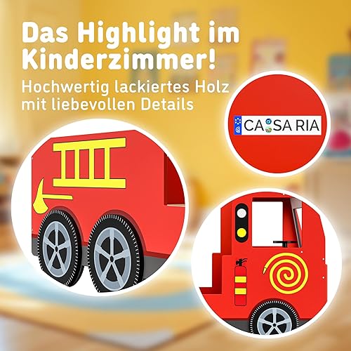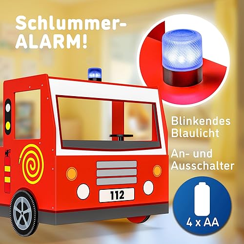 Casaria® Lit Enfant Camion de Pompier Rouge 90x200 cm Barrière Anti-Chute Sommier à Lattes Sirène & Lumière Charge 120 kg