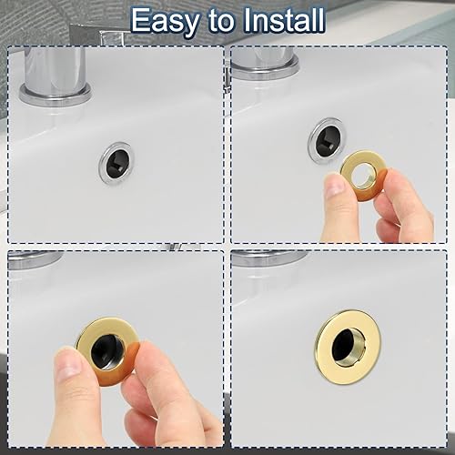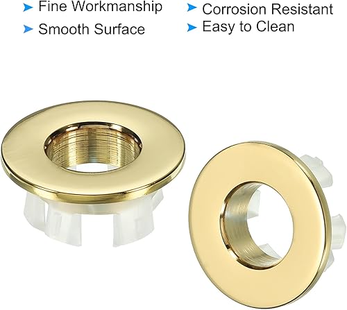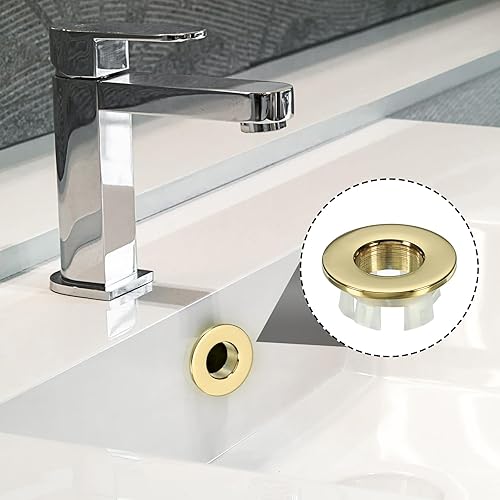PATIKIL Débordement Anneau, 3pcs Évier Rond Couvercle Bassin Garniture Laiton Insertion dans Trou Rond Bouchons pour Cuisine Salle Bain, Or