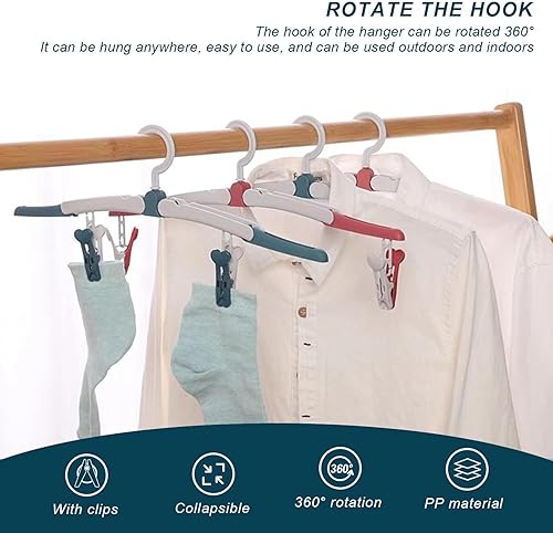 HASLED Lot de 4 Cintres Pliables de Voyage - Rotatifs 360° avec Pinces, Gain de Place pour Valise, Hôtel et Camping
