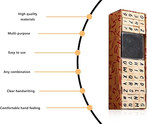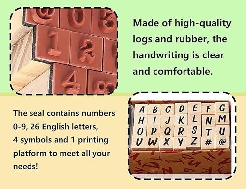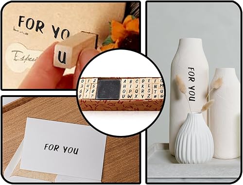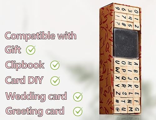ZoeTekway Lot de 40 tampons de lettres,petits symboles de l'alphabet en bois vintage,lettres,chiffres avec jeu de tampons encreurs,pour le scrapbooking,l'artisanat,les cartes de vœux