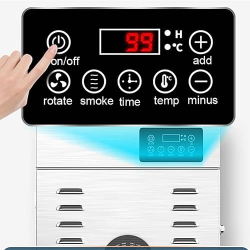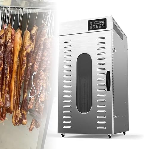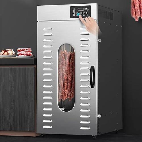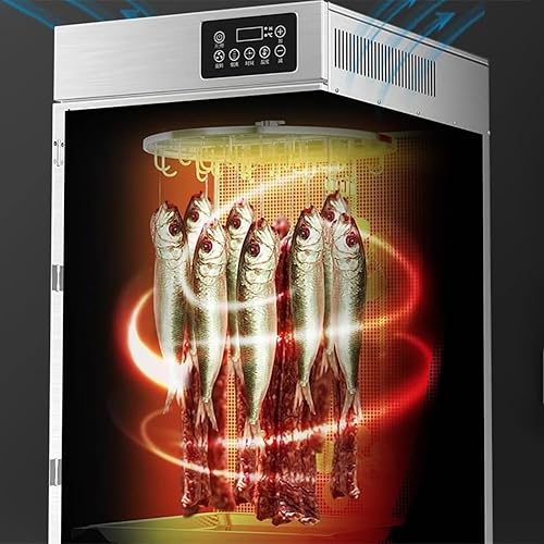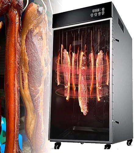 Séchoir à viande rotatif à 360 °, déshydrateur de saucisses commercial, séchoir rotatif en acier inoxydable pour saucisses, bacon, poulet, canard, poisson, bœuf avec minuterie numérique de 24 heures,