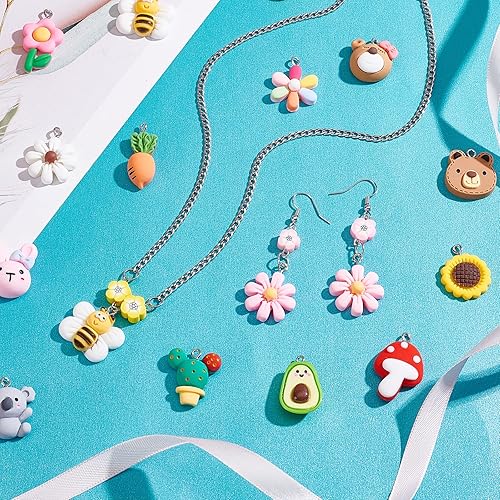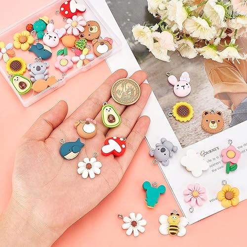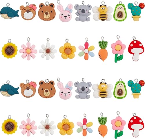 CHGCRAFT 32 Pcs 16 Style Mignon Résine Charms Dessin Animé Coloré Animal Pendentif Fruits Résine pour Collier Bracelet Boucle d'oreille Artisanat, 22x2x1.5mm