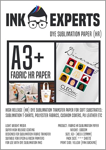 Ink Experts Fabric A3+ Lot de 50 feuilles de papier de sublimation à libération élevée 100 g/m²