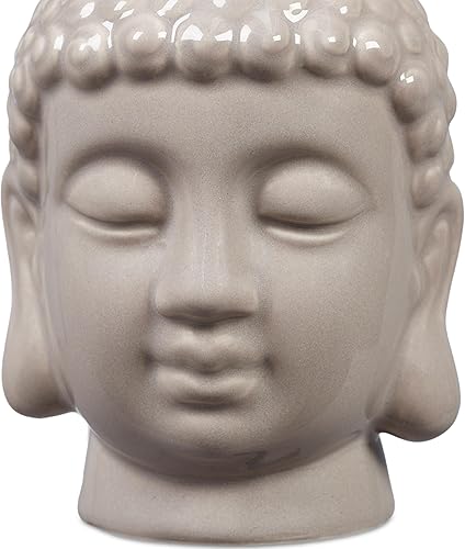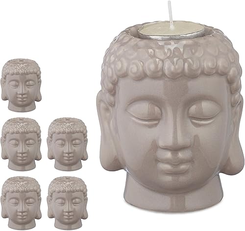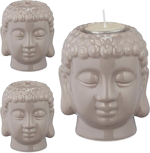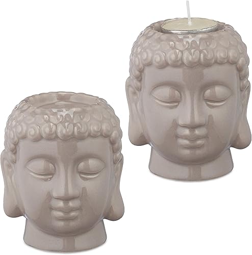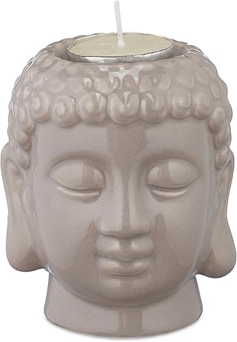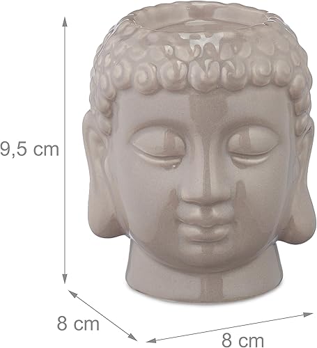 Relaxdays Porte-Bougie, pour Bougie Chauffe-Plat, tête de Bouddha, décoration Feng Shui, Salon et Salle Bain, Gris