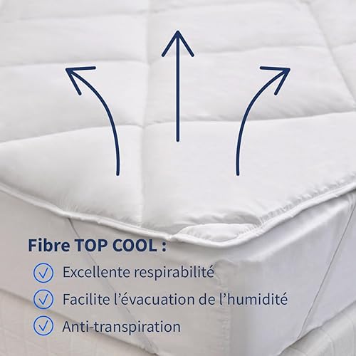 Bleu Câlin Surmatelas 160x200 cm - Moelleux et Respirant - Lavable à 95°C - Enveloppe Anti-Transpiration - Fabriqué en France