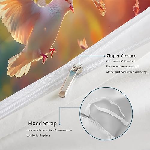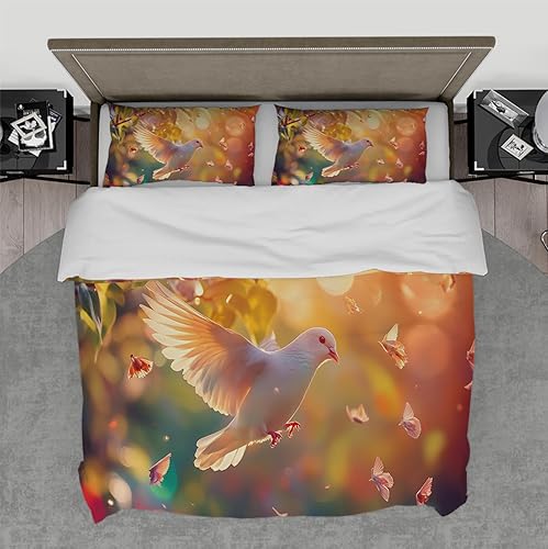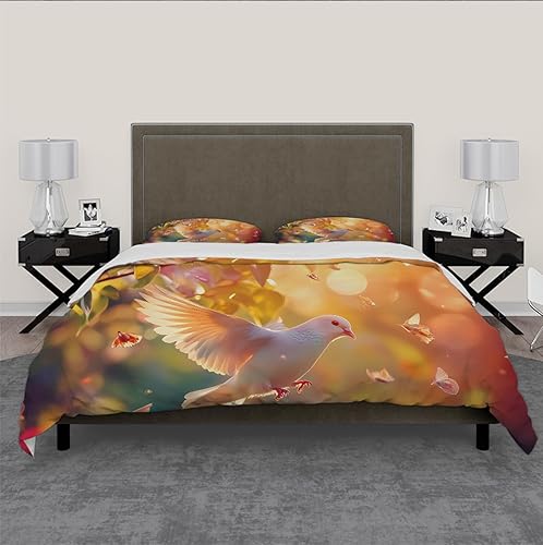 Housse Couette Colombe Blanche Ensemble 3 pièces Fantasy Sunset Glow et Printemps Chute Fleurs Motif Ensembles literie avec Fermeture éclair 2 taies d’Oreiller 230x220 cm
