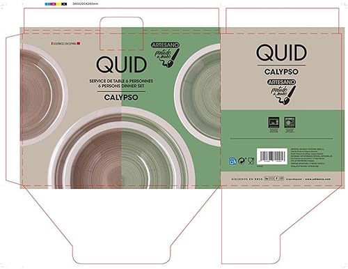Quid Calypso Service de table en céramique 18 pièces 6 personnes en faïence Passe au micro-ondes Rangez les assiettes dans un endroit sec et ventilé empilable