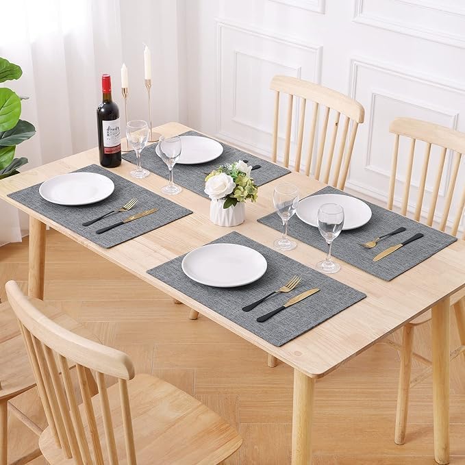 Lot de 6 sets de table lavables - En lin - Résistants à la chaleur - Antidérapants - Double face - En tissu - Gris foncé