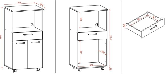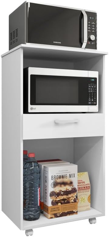 KITS PARANA Meuble Micro-Onde Blanc Mobile 2 Portes 1 Tiroir L 61 H 117.5 P 48.8 cm