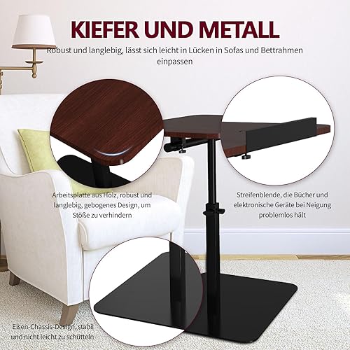 QMJKJGB Table d'appoint en forme de C, avec hauteur réglable, inclinaison, rotation à 360 °. La table d'appoint dispose d'une base métallique stable et difficile à secouer, pour café et ordinateur