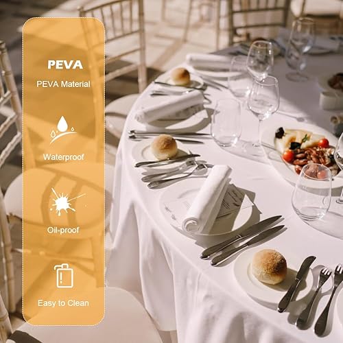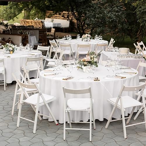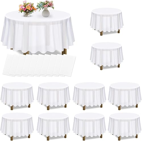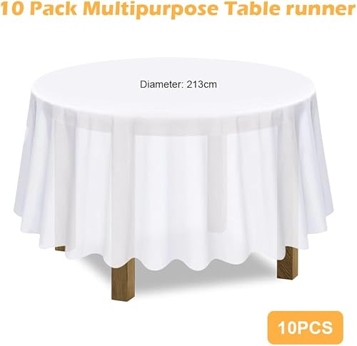 Umllpet Lot de 10 nappes rondes jetables blanches pour table ronde, 230 cm, nappes imperméables pour anniversaire, Pâques, mariage, douche nuptiale, fête
