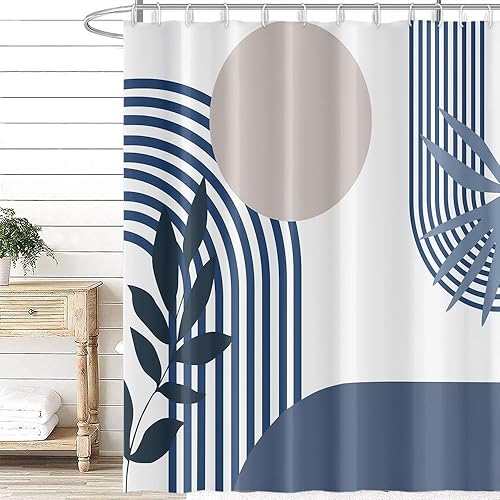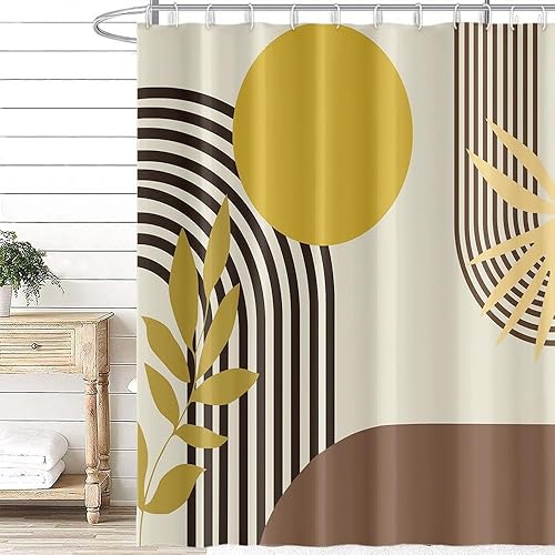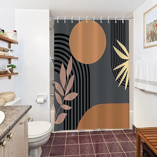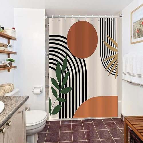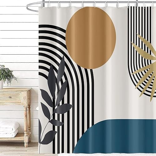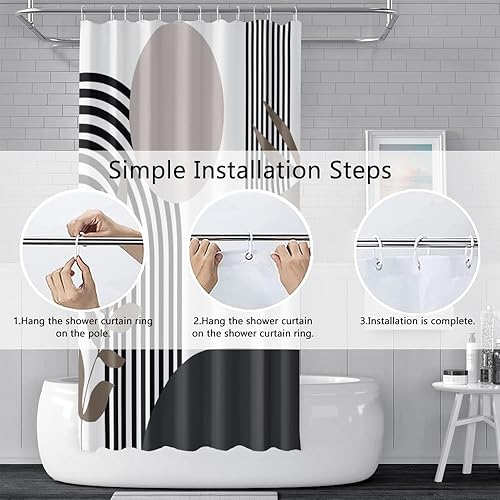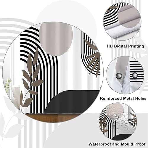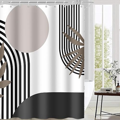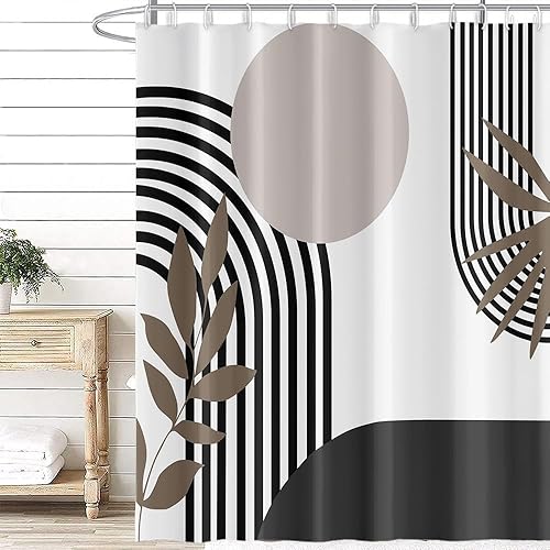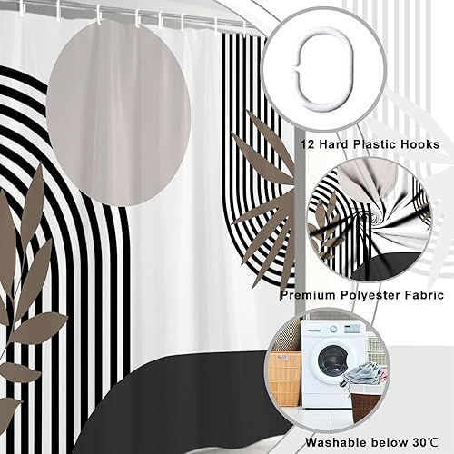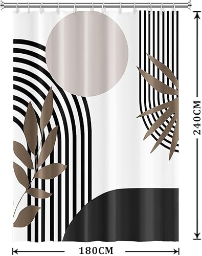 Uiiooazy Rideau Douche Vert, Rideau de Douche Abstrait Géométrique Lignes Noir Rayé Rideaux de Baignoire Anti Moisissure Imperméable Tissu Polyester Rideaux Salle de Bain avec 12 Crochets 180x180cm