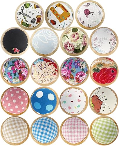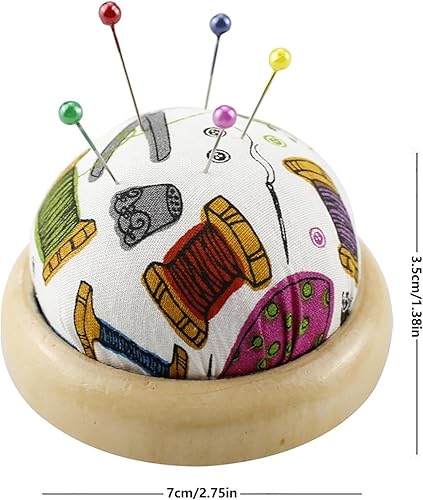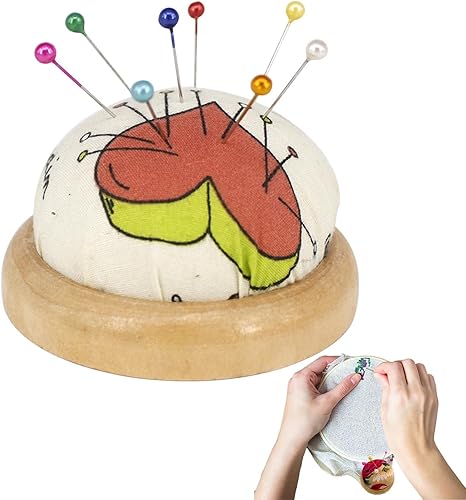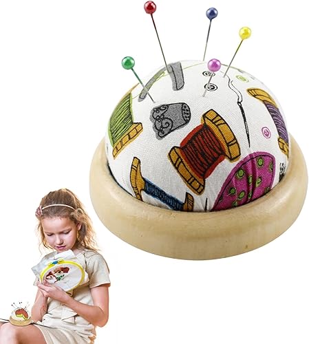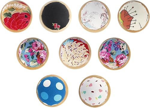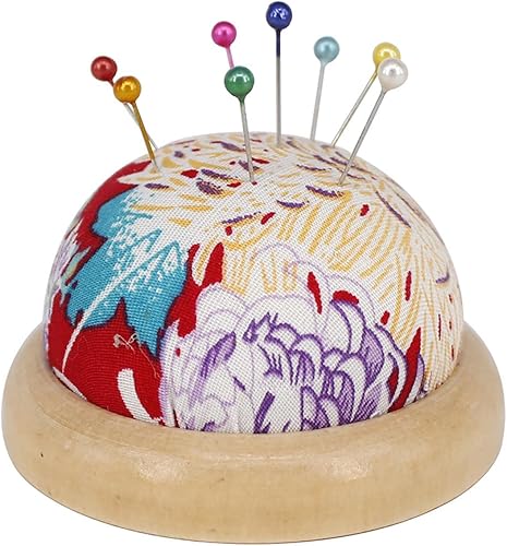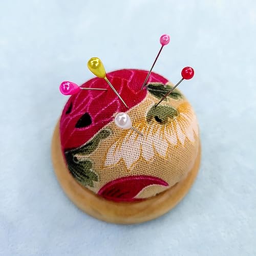 Coussin à épingles à broder - Coussin vintage avec base en bois | Épinglettes de style japonais - Accessoire de broderie - Avec imprimé floral - Pour fournitures de couture