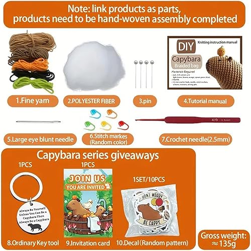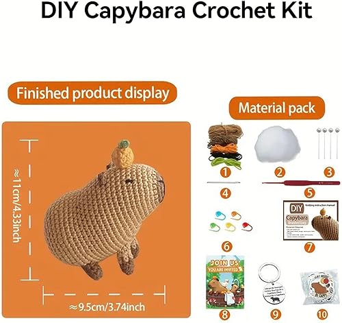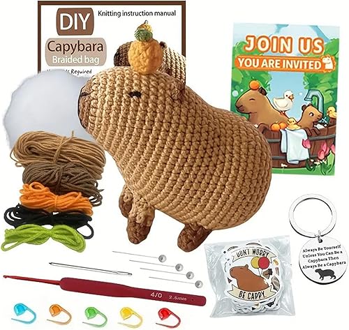 Ensemble de fils à crochets, jouet Capybara en laine tricotée, ensemble de fils à tricoter pour Capybara | Kit de crochet débutant, kit d’animaux au crochet pour