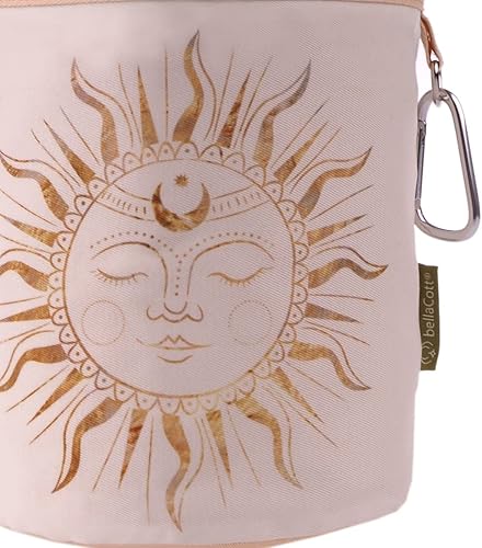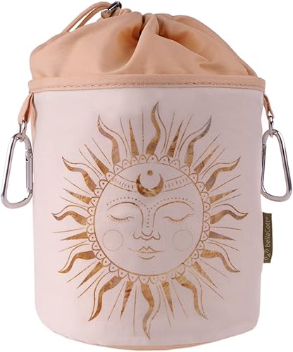 Sac à pinces à linge portable en coton avec 2 mousquetons robustes, cordon de serrage et bloqueur en métal pour suspendre et ranger des pinces à linge - Motif soleil