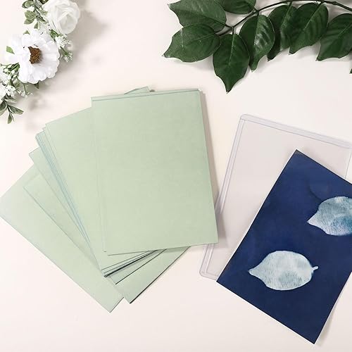 24 Feuilles Kit de Papier d'Impression Solaire, 14,8x10,5cm Papier Cyanotype avec Dossier Transparent Haute Sensibilité Nature Papier d'Impression Solaire pour Enfants Adultes d'Art Projet