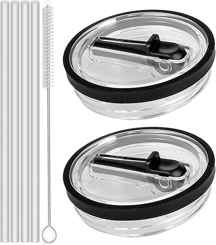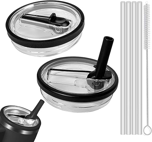 Rixotix Lot de 2 couvercles de rechange anti-fuite pour gobelet de 100 ml avec 4 pailles et 1 brosse à paille, couvercle de rechange pour gobelet de 100 ml, couvercle de rechange pour gobelet de 100