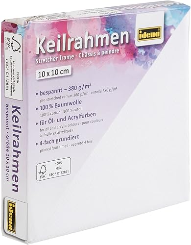 Idena 60009 - Cadre tendeur avec toile 100% coton, grammage 380 g/m², pour peinture à l'huile et acrylique, grand format 10 x 10 cm environ, blanc