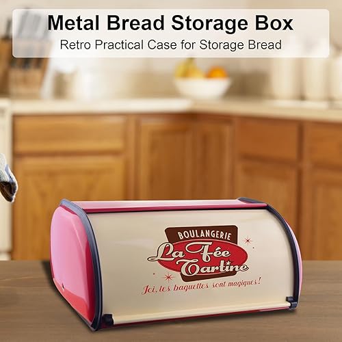 Boîte à pain avec couvercle à rouleau Récipient à pâtisserie à pain Comptoir de cuisine Revêtement en poudre Facile à nettoyer Poignées en acier inoxydable Design unique