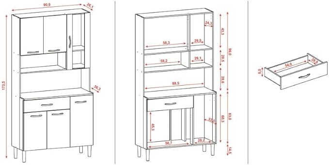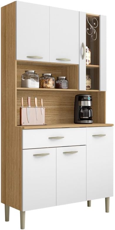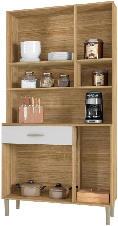 ACTUAL DIFFUSION Buffet de Cuisine 6 Portes 1 Tiroir Chêne et Blanc L 90.9 H 173.5 P 36.3 cm