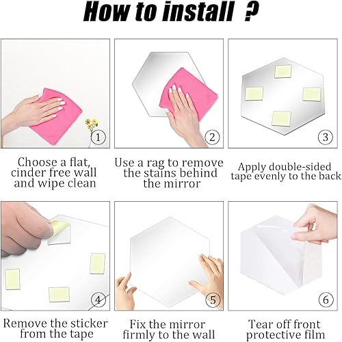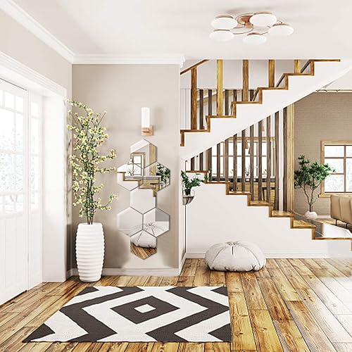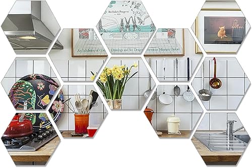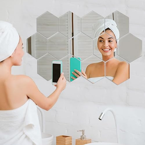 CINGHIA Miroir Adhesif Mural,Miroir Autocollant Miroir Adhésif,12 Pièces Miroirs Muraux Acrylique,Miroir Mural Autocollant,Miroir Hexagonal pour Salle de Bain,Salon 16,5×18×9cm