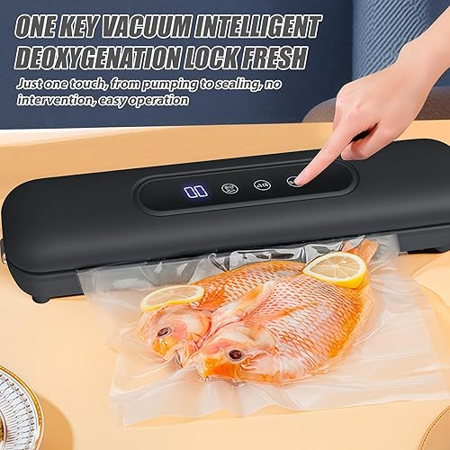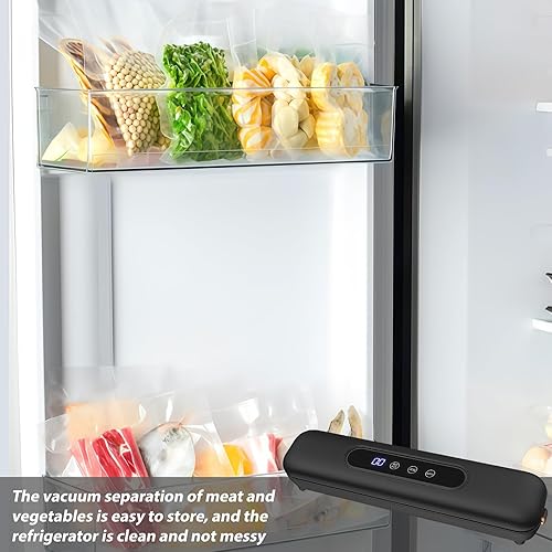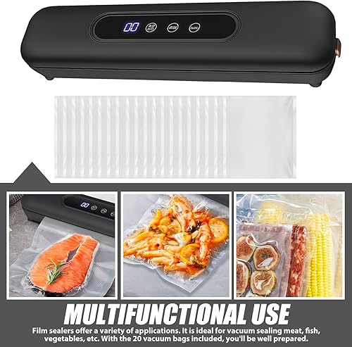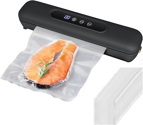 LEKEFETO Machine à emballer sous vide avec 20 sacs sous vide, compacte, pour aliments, facile à utiliser avec écran tactile étanche, soudeuse de film avec une longueur de scellage de 25 cm (noir)