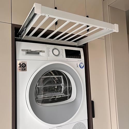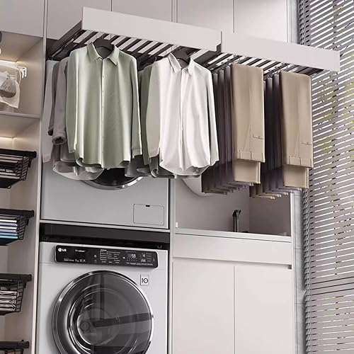 Tiroir Extensible pour Pantalons coulissants - Porte-Pantalons Coulissant pour Armoire, au-Dessus de l'étendoir pour Machine à Laver, étendoir à vêtements caché Multifonctionnel, Gain de