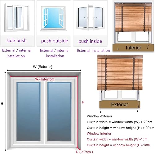 Stores Vénitiens Bois pour Fenêtres et Portes,Stores Vénitiens en Bois Véritable Occultants/Isolants,Rideaux D'intimité,Rideau Décorer for Bureau/Maison,avec Accessoires (W60xH90cm(24x36in))