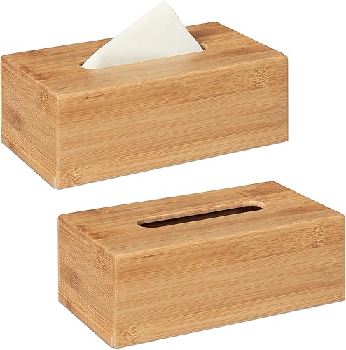 Relaxdays 2X Boîte à mouchoirs en Bambou Rangement à Tissus Salle de Bain en Bois boîte de mouchoirs, 7,5 x 24 x 12 cm, Nature