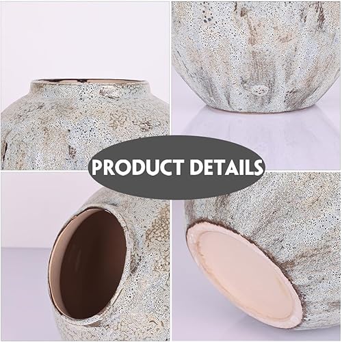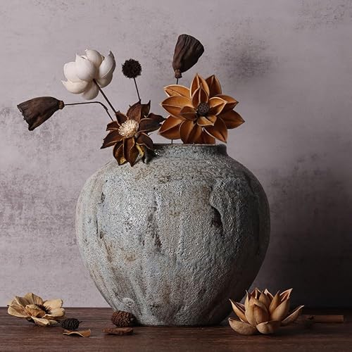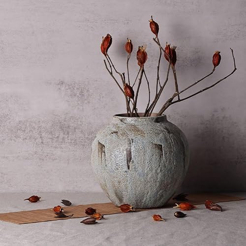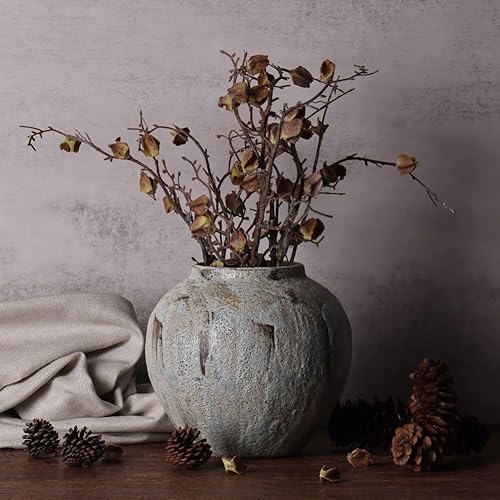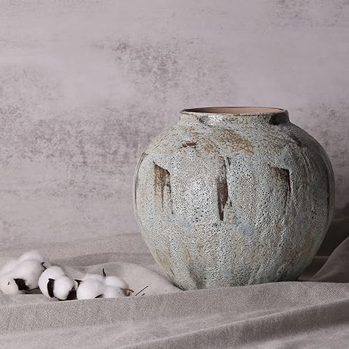 Vase rustique en céramique pour décoration de ferme, poterie en terre cuite de 20,1 cm, argile texturée ronde, vintage vieilli, grand pour salon, table, centres de table et décoration de cheminée