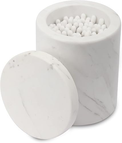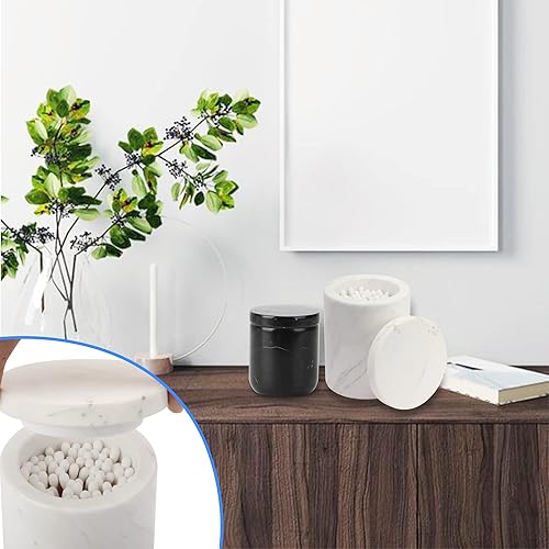 WORHE Récipient en marbre, récipient en marbre avec couvercle, organisateur de vanité de salle de bain, adapté pour ranger les éponges de maquillage et les sels de bain, idéal pour les accessoires de