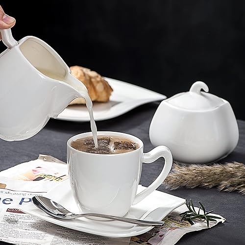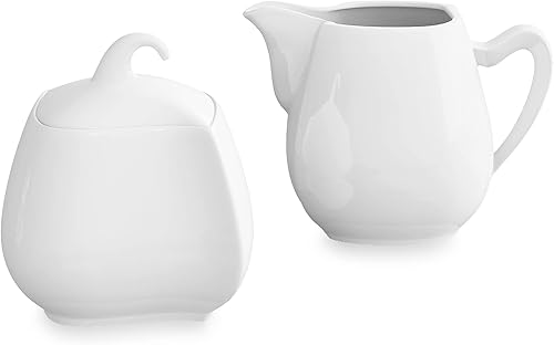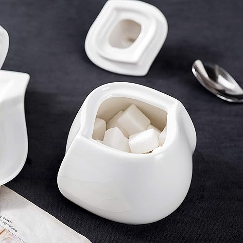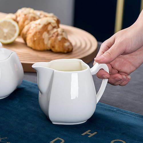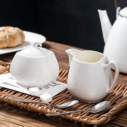 MALACASA, Série Elvira, Pot à Lait et Sucrier avec Couvercle Porcelaine, Pot à Crème Boîte à Sucre