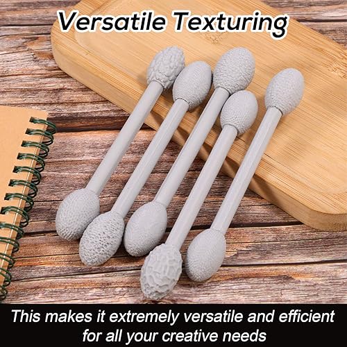 Lyreh 5pcs Ensemble de Argile Modélisation, Rouleau Texture Argile Ovale à Double Tête avec Divers Motifs et Tête de Rouleau Amovible pour la Poterie et les Travaux Manuels(Gris)