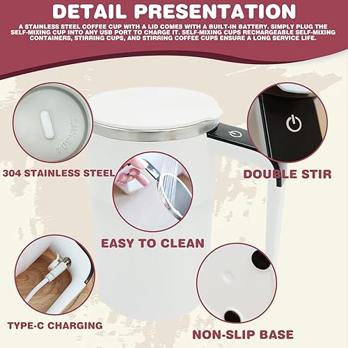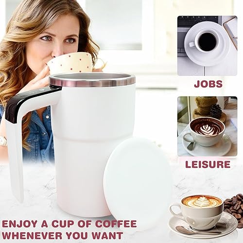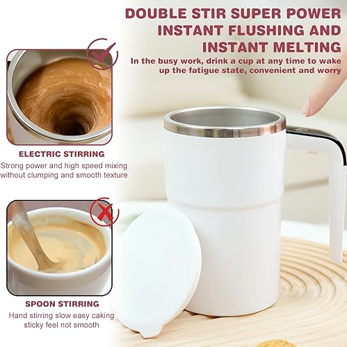 Tasse à mélanger automatique 380 ml Tasse à café à mélangeur automatique : tasse mélangeur magnétique automatique avec couvercle, rechargeable par USB lavable Tasse mélangeuse électrique pour café,