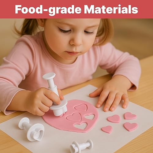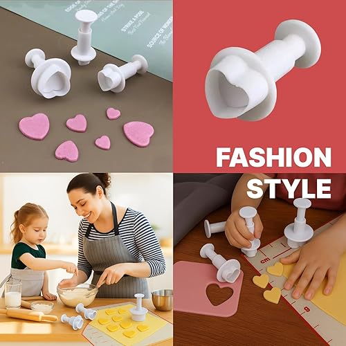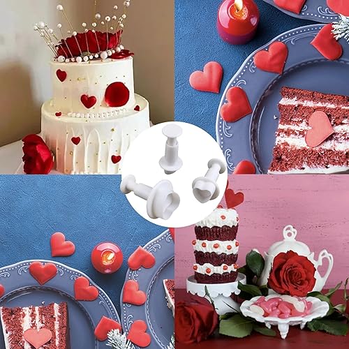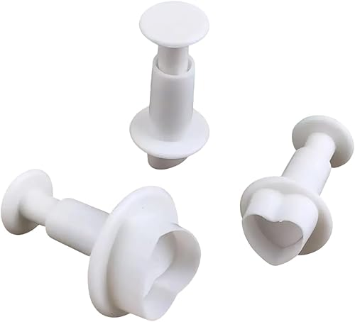 Set de 3 Emporte-Pièces en Forme de Cœur avec Poussoir - Outils de Décoration de Gâteaux, Pâte à Sucre, Marzipan, Fondant - Coupe-Pâte, Blanc - Idéal pour Décorations de Gâteaux et Pâtisseries