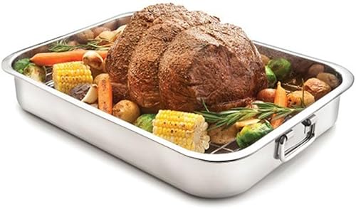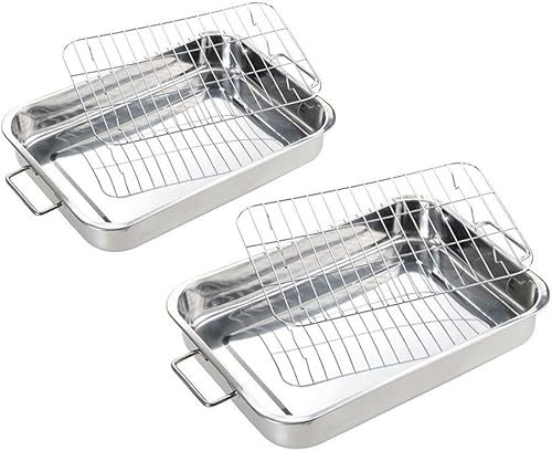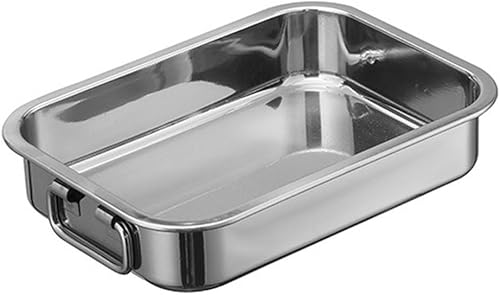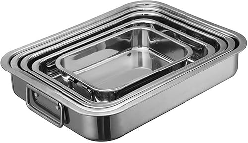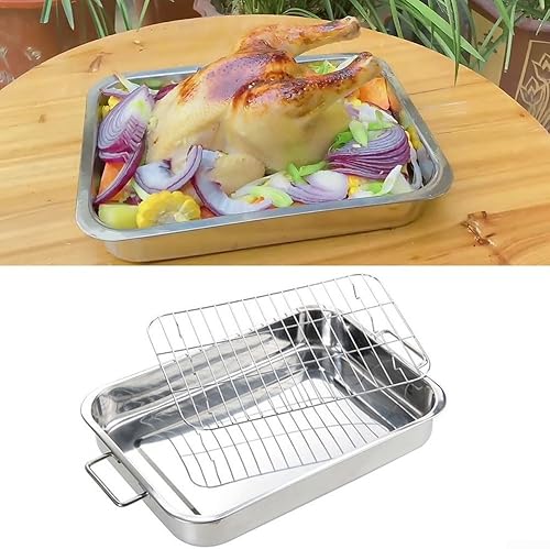 HEIBTENY Moule Carré en Acier Inoxydable Avec Grille de Contrôle de l'Huile, Poignées, Plaque de Cuisson Profonde, Poêle à Rôtir pour une Cuisson