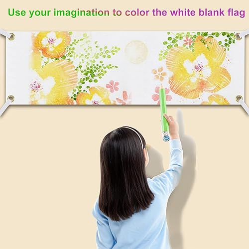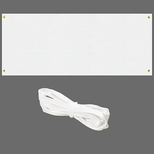 Orssmigs 180x60cm Bannière Vierge à Peindre Polyester Bannières Blanche Bannière en Toile Vierge avec 6m Corde à Suspendre pour DIY, Mur Extérieur Intérieur