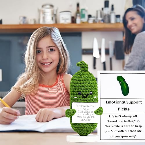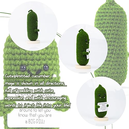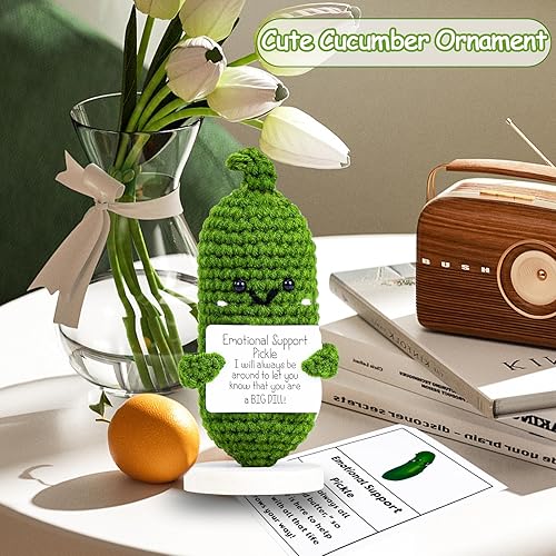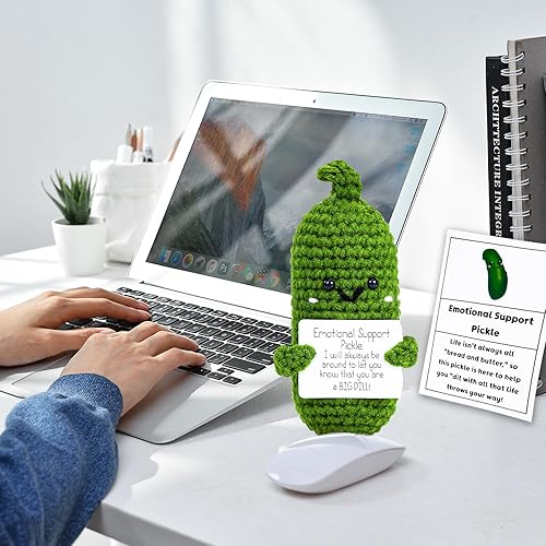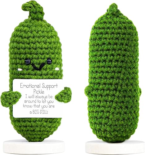 Emotional Support Pickle, Mini PoupéE de Cornichon TricotéE, Pickle Positive Amusante, Mini Cucumber en Peluche, Cadeaux de Bonne Chance, pour la Famille, les Amis et les Collègues