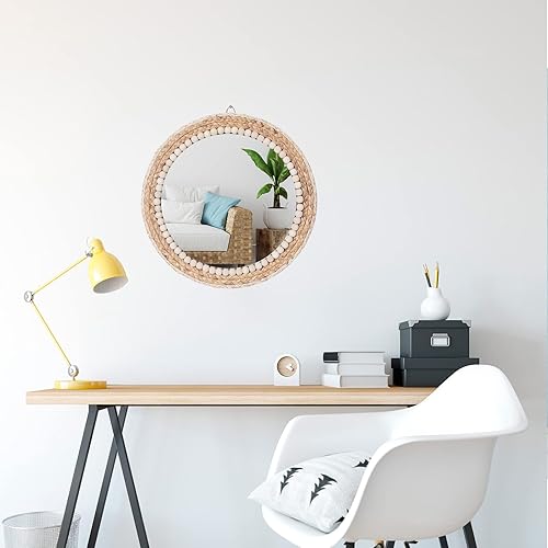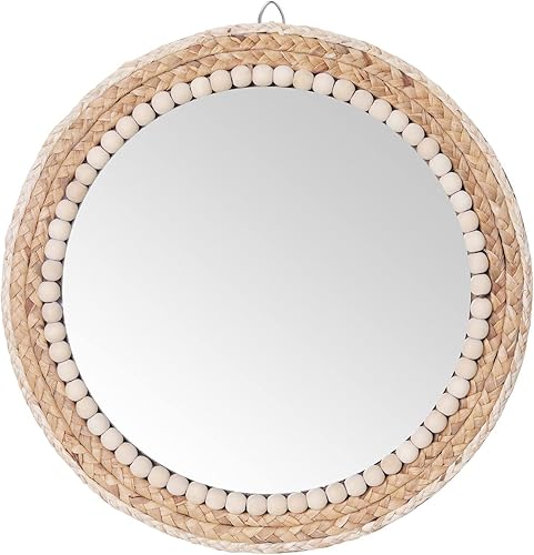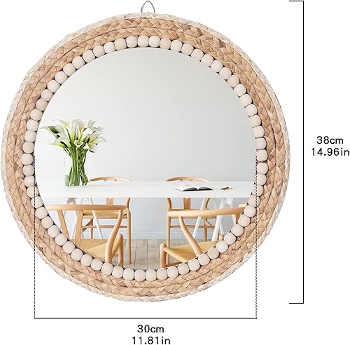 SWTHONY Miroir mural rond bohème à suspendre - 38,1 cm - En rotin - Pour ferme, salon, chambre à coucher, salle de bain