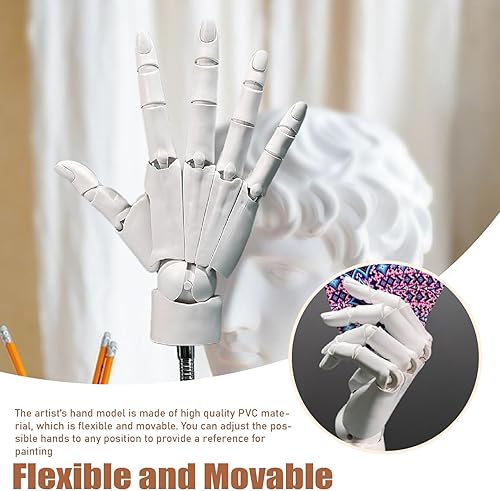 Modèle de main flexible, main articulée 1: 1, modèle gauche avec articulation mobile et base de bricolage PVC pour le dessin, la peinture, l'esquisse (blanc)