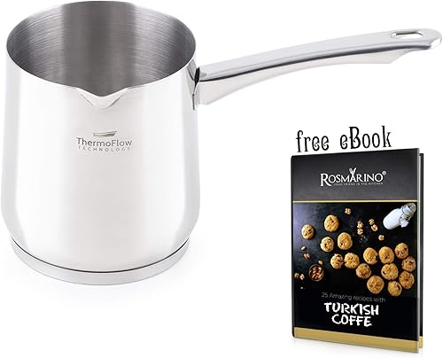 ROSMARINO cafetière à induction en acier inoxydable | Cafetière moderne turque Cezve avec base en acier à 3 couches | (1200, tous feux)