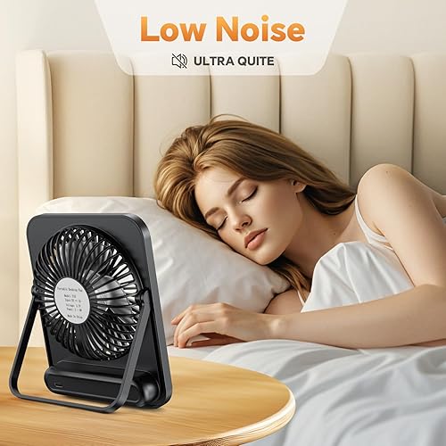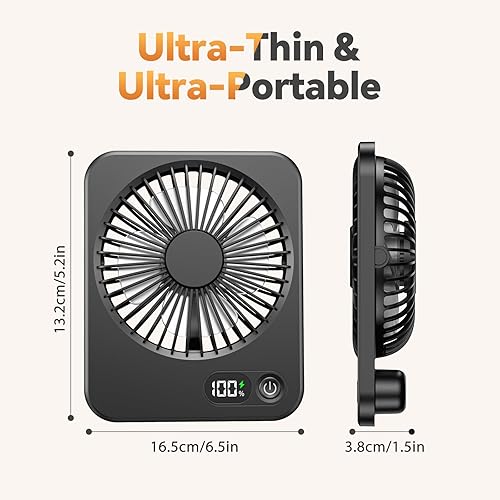 ITJMRJP Ventilateur de Bureau Mini USB Ventilateur Portable avec Écran LCD 2500mAh Batterie Ventilateur Silencieux 5 Vitesses Petit Ventilateur de Table Rechargeable pour Bureau Maison Camping(Noir)