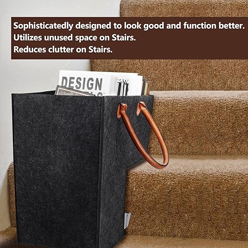 Tytlyworth Panier d'escalier avec poignées – Panier d'16 Pouces, Toile soli, poignées en Cuir, Sac d'escalier et Cache pour marches Tapis et Bois Dur