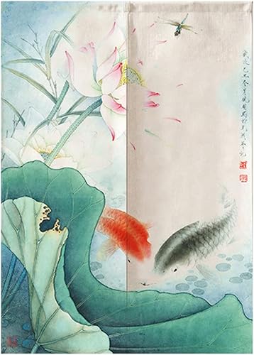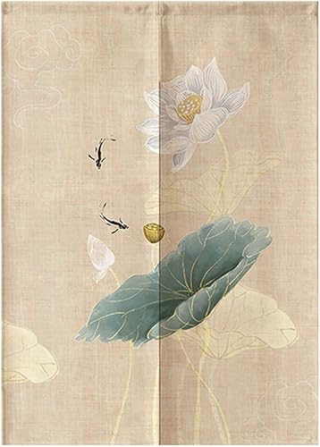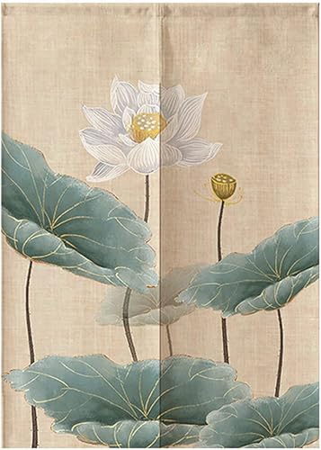 Hiseng Japonais Noren De Rideau de Porte Diviseur Tapisserie Fenêtre Rideaux Panneau, Tenture Décoration pour Chambre à Coucher Cuisine Restaurant Embrasure (Fleur de Lotus,75x150cm)