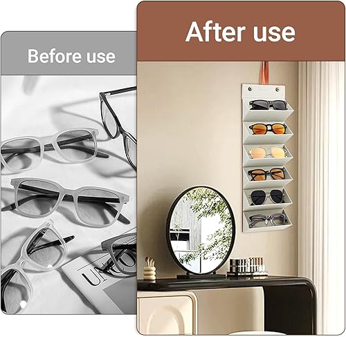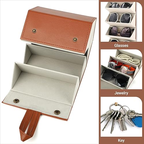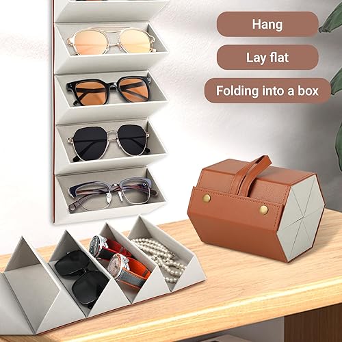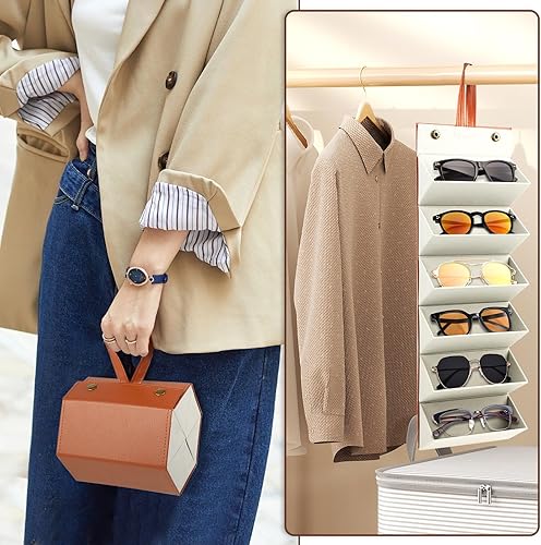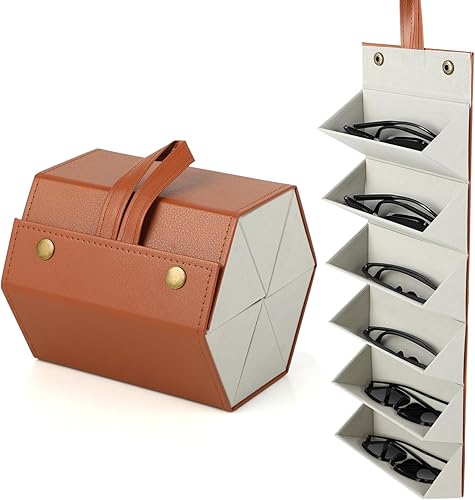 Rangement Lunette De Soleil,Boîte de Rangement pour Lunettes de Soleil,Étui de voyage pour lunettes de soleil,Boîte de Rangement Pliable à 6 Compartiments,Cuir PU,Idéal pour les Voyages et pour Ranger