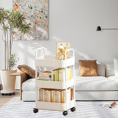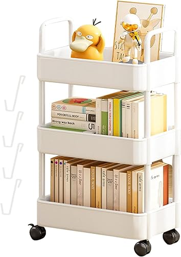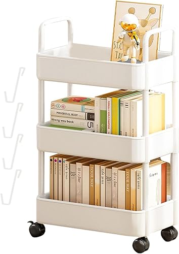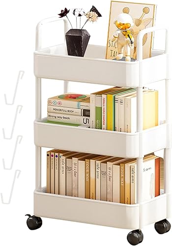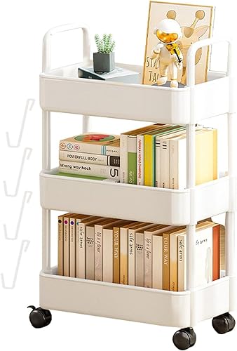 caizhe Rolling Utility Cart,Snack Cart 3/4 Tier,Rolling Shelf with Wheels & Hooks, Book Rolling Cart Organizer, Movable Storage Organizer for Home Organization