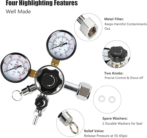 Réducteur de pression, réducteur de pression principal CO2 double manomètre W21.8 Régulateur de pression CO2 pour distributeurs, brassage de bière, tireuse à bière