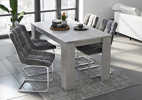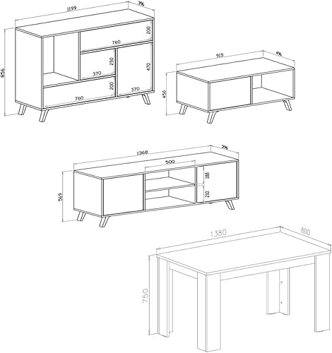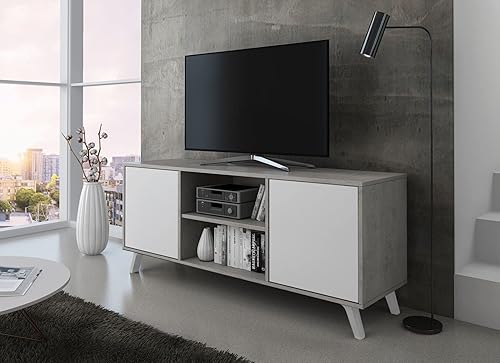 Skraut Home | Ensemble Wind| Salle à Manger| Buffet-Meuble TV-Table Centrale-Table Fixe | Finition Couleur Ciment/Blanc
